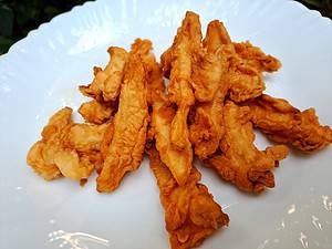 Remove the potatoes from the batter and place in the 3/4 cup flour mixture. Mix them around to ensure they are well coated