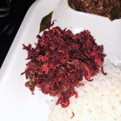 Prepare Beetroot Kadala Thoran, a delicious Kerala-style stir fry made with fresh beetroot and black chickpeas. This Nadan Kerala dish combines the natural sweetness of beetroot with the earthy flavor of kadala (black chickpeas), creating a unique taste that’s both wholesome and satisfying. Very popular in many Kerala homes that you can often see on festive occasions and Onam Sadyas.