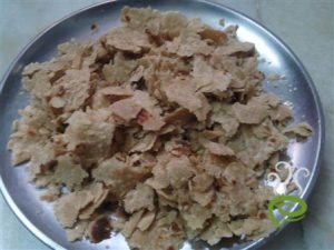 • cut the chappati into small pieces or put into the mixer and make as a flakes