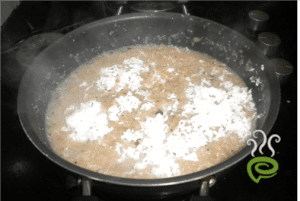 • After the Dhailya is cooked properly, add grated Coconut and stir it further and change the Uppumav to a serving plate