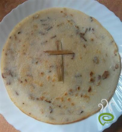 Take the pan with both hands and give it a circular twist so that about half an inch more of the pan is thinly coated with the batter, which, when the kallappam is cooked, forms the crisp brown border.