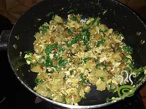 • Mix well and cook covered for 6-7 minutes, stirring in between, until potato pieces are cooked completely.