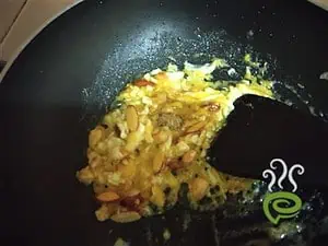 • Heat ghee in a pan and add crushed nuts and saute for few second's.