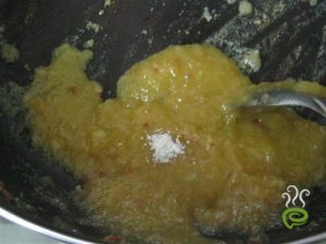 • In pan pour the mixture and non stop stiring in medium flames