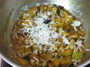 • now turn off the flame and add grated coconut