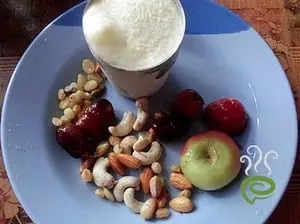 Fruit and nut milk shake is a very healthy and protein rich drink with the goodness of dry fruits like raisins,dates dry nuts like cashew,almond,pistachio fresh fruits like apple strawberry etc.kids and adults alike will love this mikshake.