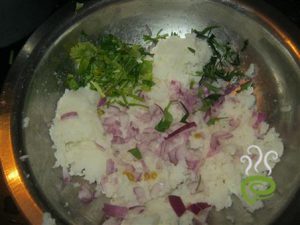 • In a bowl take leftover rice and mash well