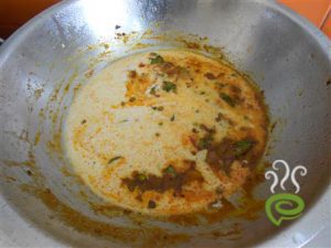 • in a kadai heat the oil and castor oil and temper the mustard, broken urad dal, cumin seed and fenugreek seed