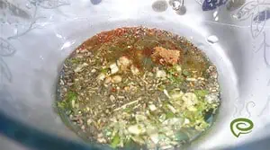 • in a bowl add olive oil, garlic, coriander leafs, dry oregano and salt.