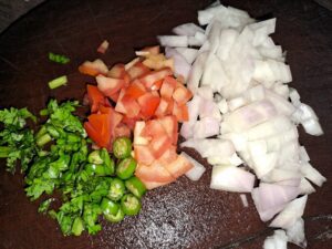 The preparation of the dish is straightforward. It involves heating oil or ghee in a pan, and adding the egg mixture with the chopped veggies. The mixture is gently folded towards the middle with the middle region untouched until it reaches a semi-cooked consistency. Ensure that the eggs remain creamy and not fully set.