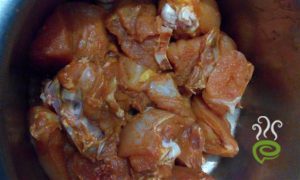 Marinate chicken in chilly powder, turmeric powder, salt and vinegar.