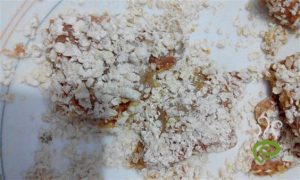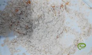 Dip chicken in egg white.. cover in oats-flour mixture. Deep fry it in oil.