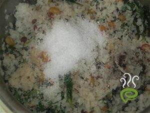 • In a mixer add pudhina mixture and salt. grind it and if want add little water