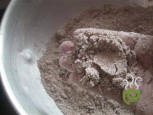 • In pan add ragi flour and fry for 2 minutes till aroma rise