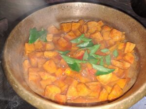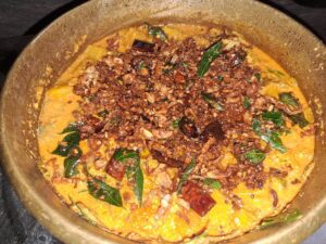 No traditional Kerala Sadya is complete without an Erisseri on the banana leaf. The soft banana pieces coated in a mildly spiced coconut paste and topped with roasted coconut give it an irresistible flavour and aroma. This dish embodies the essence of Kerala cooking — a perfect harmony of taste, texture, and tradition.