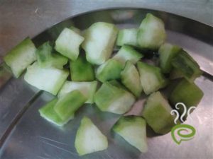 • add chopped ridge gourd, salt, sambhar powder, and one glass of water, mix well and allow to cook in medium flame until the water get dry and ridge gourd get cooked