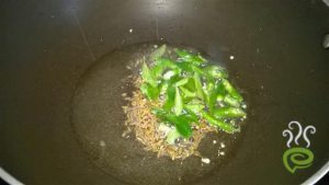 In a non stick pan, add oil and temper with whole jeera, curry leaves and chopped green chilies.
