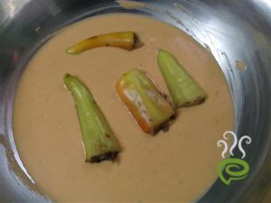 • dip the stuffed milagai in the batter