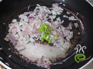 • in a pan heat the oil and add onion and green chilli and saute it until the onion turn into brown
