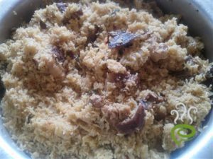 now add briyani rice and keep the flame in low until the rice get 1/2 cooked. then close the lid and allow for 5 minutes to get cook, turn off before the whistle come