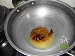 • Heat oil in a kadai add mustard when mustard crackles add ,urad dal and red chilli