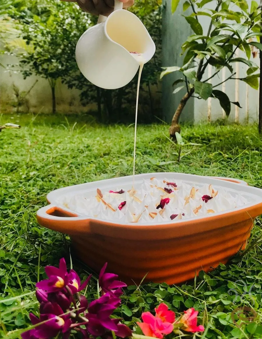 Whisk together the milk, sweetened condensed milk and cream. Once combined, pour the leches over the cake. Refrigerate the cake overnight. Every hour or so keep pouring over the milk mixture that collects in the platter back into the cake, this way the cake will absorb the leches mixture better and have a rich taste.You can pipe or spread the icing onto the Tres Leches to give it a good decoration. Refrigerate for about an hour or more and serve the Tres Leches sprinkled with rose petals and crushed pistachios..