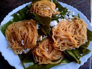Wheat Idiyappam, also known as Gothambu Idiyappam or Wheat String Hoppers, is a wholesome twist on the traditional Kerala breakfast classic. Made with whole wheat flour instead of rice flour, this soft and delicate dish offers a healthier, fiber-rich alternative without compromising on authentic taste. Perfect for those looking for nutritious Kerala breakfast options, Wheat Idiyappam pairs beautifully with vegetable stew, egg curry, chicken curry, or even sweetened coconut milk.