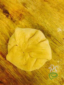 Take a rolling pin and slab keep tha ball there and fallen like this.