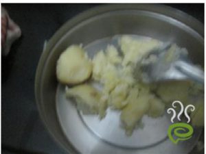 Combine with all the ingredients, mashed potatoes, grind green peas, salt,turmeric powder, minced onion. minced green chilli, chopped coriander leaves and somp powder. Mix well.
