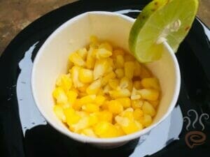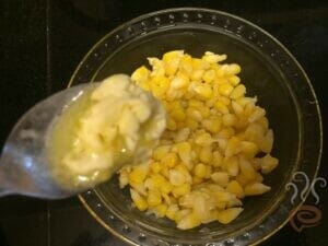 Cook the corn by adding enough water and a pinch of salt for 5 minutes. And drain it.