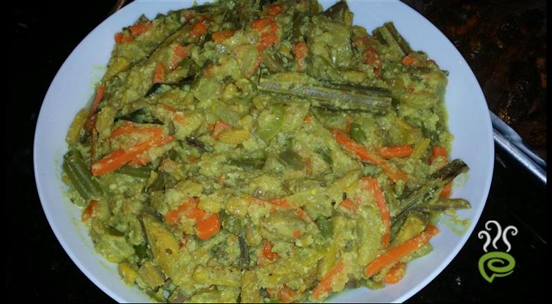 Cut the vegetables into long pieces. Cook the vegetables with turmeric powder and salt. Don't over cook.
