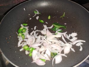 Add sliced onion and green chilly.