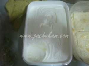 Take a sachet of whipping cream add 150 ml of milk,1.5 tea spoon of vanilla essence and 4 spoon of sugar and beat them.
