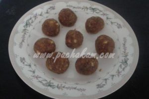 Add the grinded dates, chopped almonds and ripe custard apple, sugar and a pinch of elaichi powder into the plate.