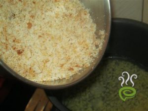Now add bread slices or bread crumb and mix with dal