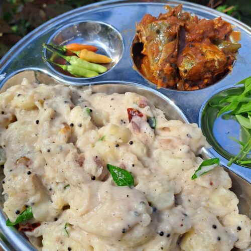 Cook the tapioca by adding salt as required. You can pressure cook it for two whistles.