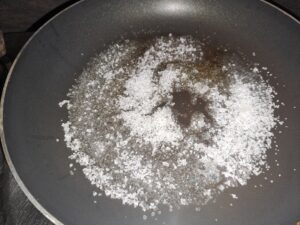 When the sugar caramelized and turn into a nice golden brown in color, pour milk into it.