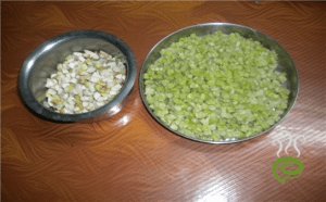 Clean the Kaippakka (Bitter gourd), remove the seeds and cut them into pieces.