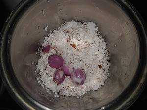 In a bowl add rice flour and salt as required then add water in to the rice powder little by little and make a tight dough. Add the coconut paste and 1/2 tsp fennel seed powder and knead it well.