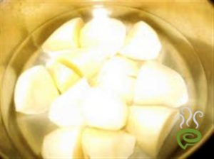 Par - boil the cubed potatoes for approximately 15 minutes. Drain off the water.