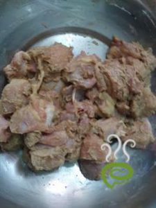 In a pan heat the oil . Now take chicken piece one by one dip in egg batter