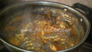 Add the red chillies and fry for a minute. Then add the ginger garlic paste and sauté.