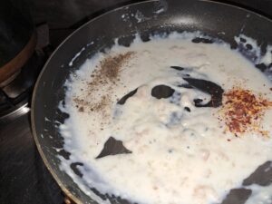 Add maida and whisk continuously on a medium-low flame. Flour is used as a thickening agent for the sauce.