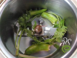 in a mixie jar add green chilli and coriander leaves and make as a paste