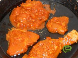 Mix the chicken with ginger garlic paste, chilly powder, salt and turmeric powder.