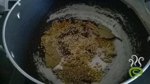 In a pan dry roast the black cardamom, cinnamon, bay leaf, elaichi, whole dhania, whole jeera, saunf and white til till fragrant.