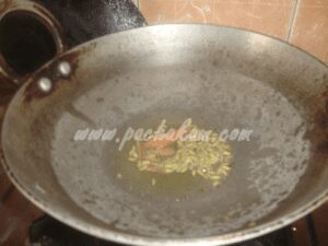 Heat oil in kadai and fry cinnamon and + ts of fennel seeds.