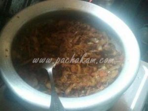 Add fried elambakka to the mixture. Mix them well and cook them and make gravy or dry masala.