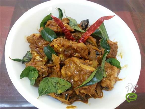 Heat oil in a wide pan , splutter fenugreek seeds and add ginger, garlic, onion, green chilly, curry leaves. Sauté it till the raw smell goes.