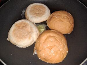 Heat butter in a pan and toast the bun. (Cut the bun into half and toast both sides)